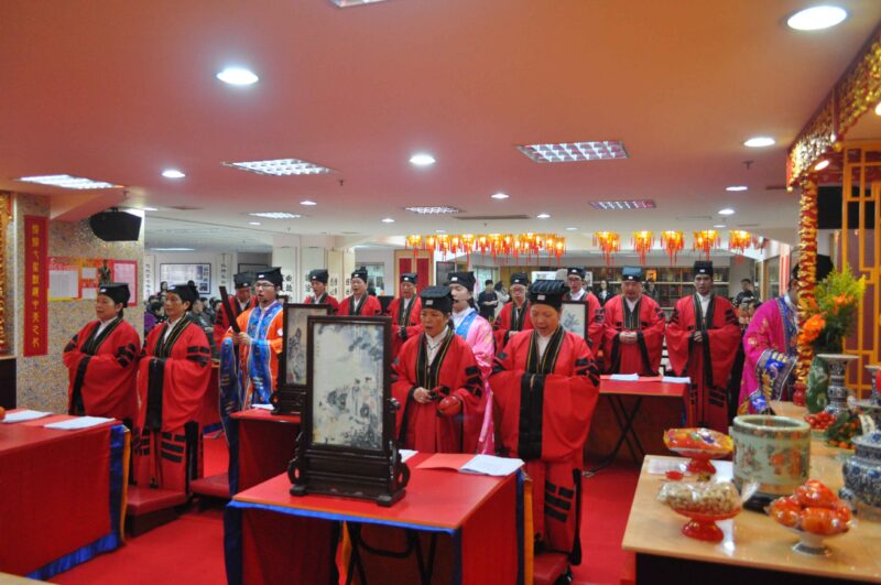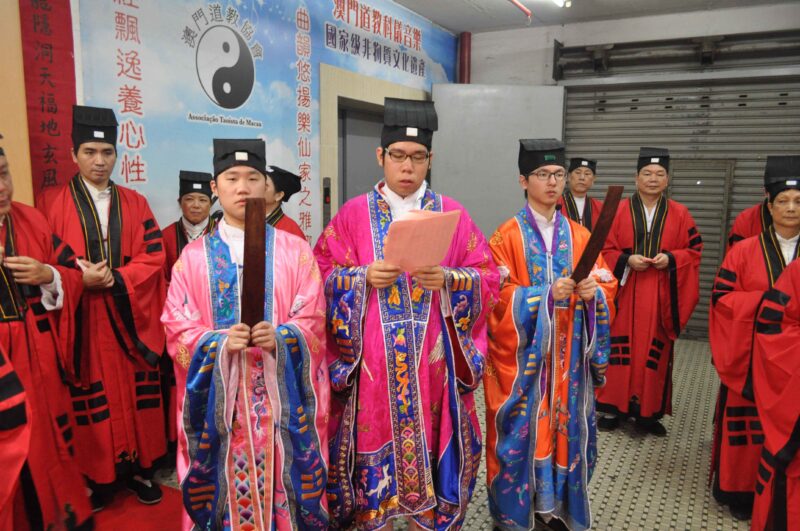 中聯辦協調部處長崔曉忠,澳區全國人大代表劉藝良,澳門基金會行政委員何桂鈴,立法議員吳在權,以及梁玉華、高展鵬、鍾文、張麗珍、李秋平、劉雁群、黎世等團體代表出席祈福禮。道協會長吳炳鋕率領法務團主持儀式。道樂團現場伴奏。