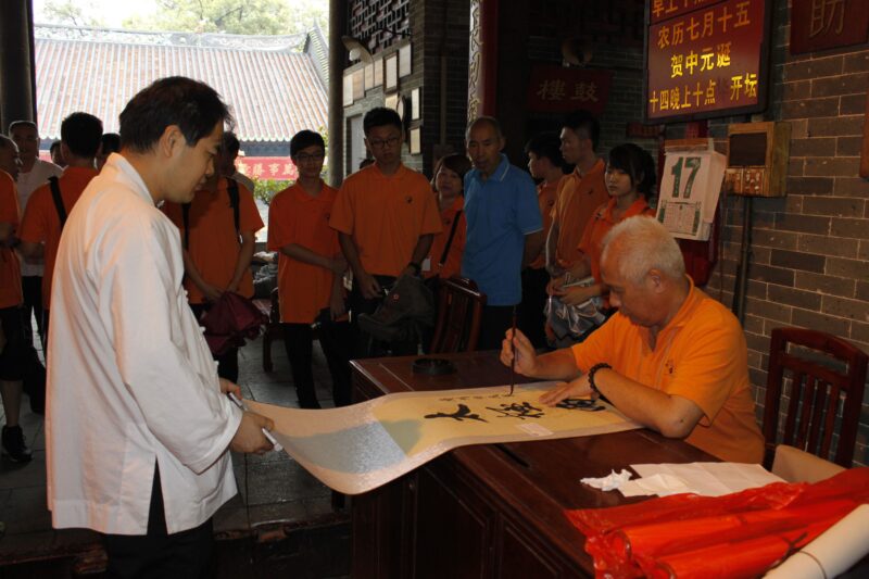 廣州市道敎協會會長潘志賢,副會長黃學良、陳建良等在純陽觀與參訪團進行座談會,潘會長等介紹了近年廣州九間道觀的重修及擴建,道觀管理,人才培訓,信眾招摹和道教文化推廣等工作。潘會長亦喜見參訪團中年青團員眾多,對澳道協的傳承工作值得穗方學習。廣東省文史研究館民間藝術院副院長陳勁佟,介紹明年新春上元節與廣州市道敎協會合辦大型廟會計劃,並祈澳門道樂團屆時可赴穗參加,共同推廣嶺南傳統文化。