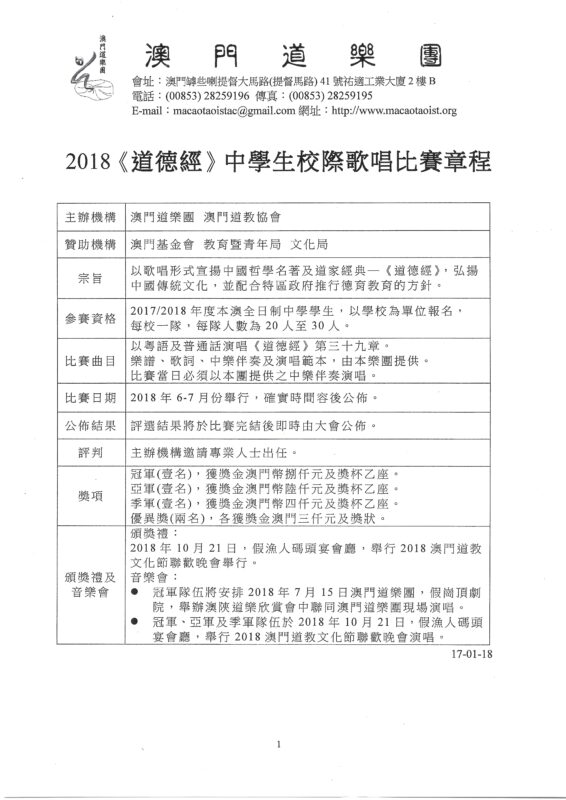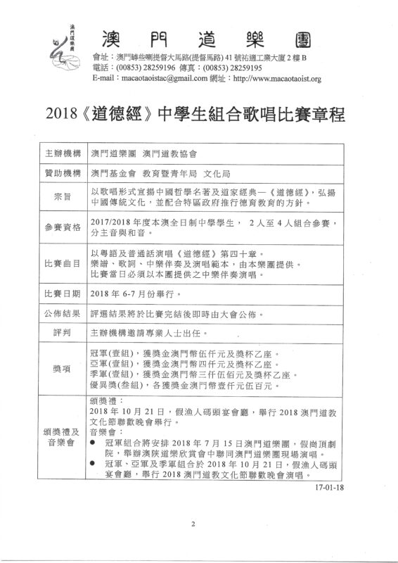 2018青年人《道德經》歌曲創作比賽頒獎典禮