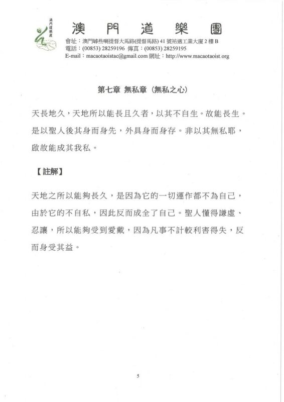 為宣揚《道德經》而設的中學生校際歌唱比賽及組合歌唱比賽、中學生書法比賽及讀後感中學生作文比賽,先後評出各獎項得主,達預期成效。與道教文化節開幕式相呼應的道教文化活動,於廿二及廿三日假議事亭前地舉行,向公衆展現道教科儀、道教音樂與道教養生武術,特邀上海市城隍廟法務團、香港道樂團及新會紫雲觀等擔演。