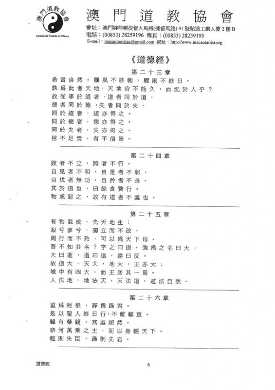 道是永恆存在的,它能產生天地萬物。大道之門就是天地的根源了。它無形地存在著,永續不斷。而它的怍用是取之不竭,用之不盡。