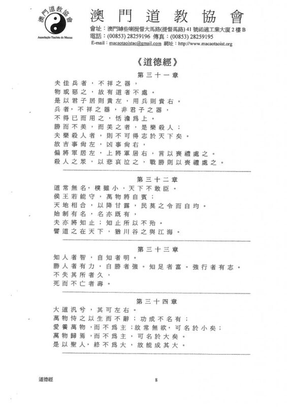 信言不美,美言不信;善者不辯,辯者不善;知者不博,博者不知。聖人不積,既以為人已愈有,既以與人已愈多。天之道,利而不害;聖人之道,為而不爭。