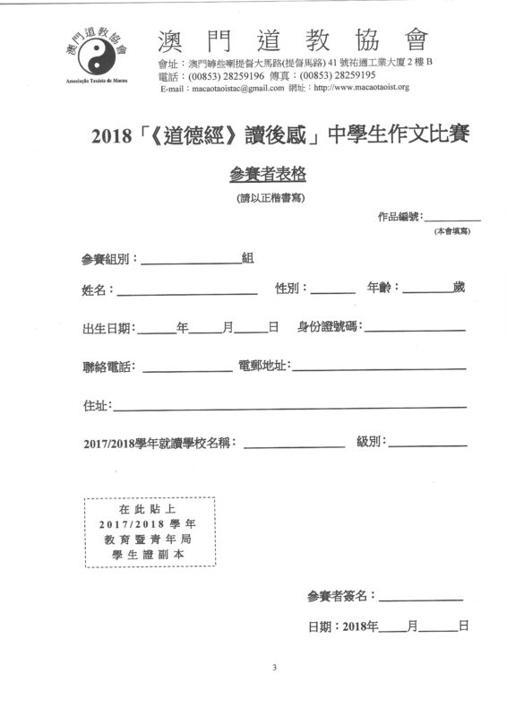 2018《道德經》中學生讀後感作文比賽揭曉