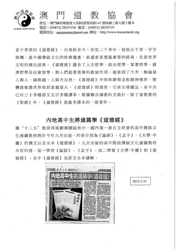澳 道協 Posted in 「《道德經》讀後感」中學生徵文比賽, 2015澳門道教文化節, 最新消息, 活動消息,Tags: ,