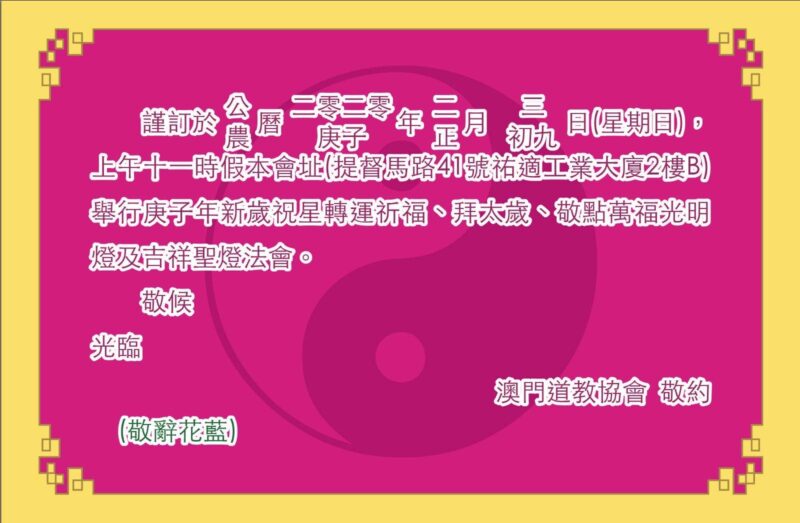 派發地點:澳門提督馬路241號 祐適工業大廈2樓 B 澳門道樂團