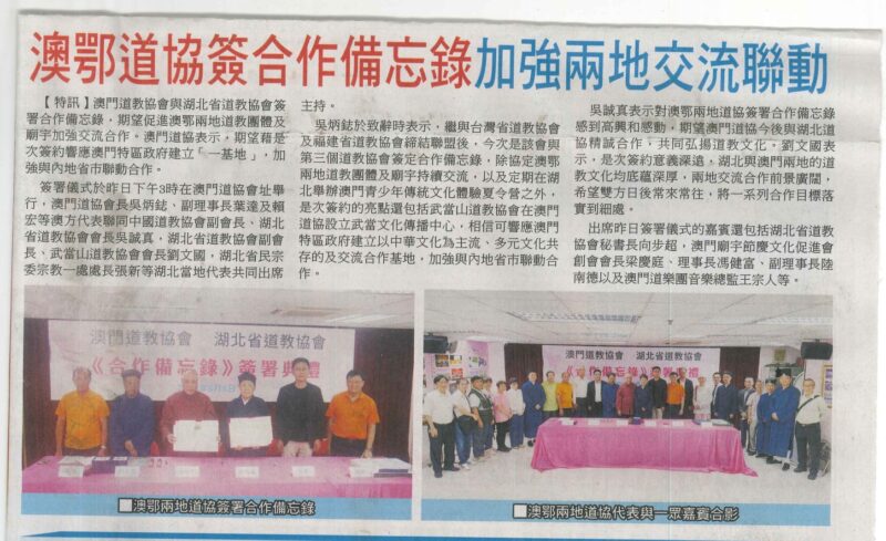 為持續推廣及宣傳澳門國家級非物質文化遺產–澳門道教科儀音樂,促進澳門與內地道教的交流,提昇澳門文化城市的地位,澳門道教協會聯同澳門道樂團、澳門道教青年協會一行六拾多人,應中國道教協會之邀,由團長吳炳鋕、副團長賴宏及吳炯章率團,中聯辦副部長吳輝和助理張澤洋為隨團顧問,於7月22日啟程前赴北京展開5天參訪交流行程。
