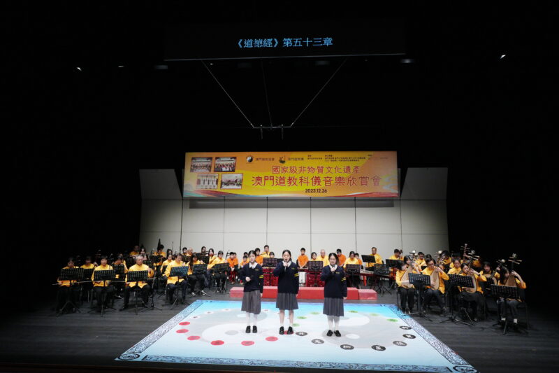 演出團體:澳門道樂團、澳門道教協會法務團、澳門少年道樂團、澳門少年八音鑼鼓團、2023《道德經》中學生歌唱比賽優勝隊伍–濠江中學、高美士中葡中學、新華中學