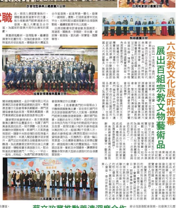 此外,第三屆粵港澳大灣區道教文化專題研討會於本月三十日上午十時假漁人碼頭宴會廳,以線上及線下形式舉行,屆時邀請三地專家學者發表論文,探討大灣區道教發展和現況,促進灣區道教文化的整理和研究,共同弘揚道教思想的精神和內涵。上述活動獲澳門基金會和霍英東基金會贊助,由內地及港澳多個道教組織協辦。