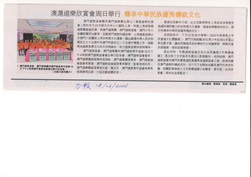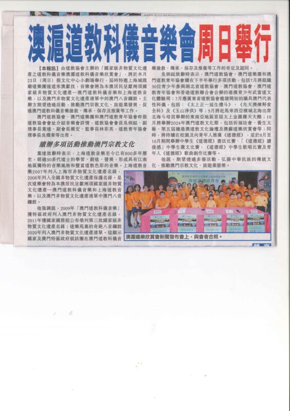 此行澳門道教協會及澳門道樂團獲澳門基金會資助部份經費。