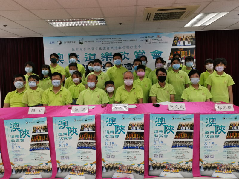 為慶祝澳門道教協會成立二十周年,澳門道教協會聯同澳門道樂團於2021年8月1日,下午三時,假崗頂劇院,舉行“澳陝道樂欣賞會”饗各界,特邀2020度中學生《道德經》歌唱比賽優勝隊伍為活動獻禮,內容豐富,靜動俱備,道韻悠揚、陣容鼎盛。中聯辦協調部陶峻處長、文化局代表澳門中樂團張詠華經理、中聯辦協調部徐思源助理、梁安琪議局代表林淑源女士、澳門廟宇節慶文化促進會創會會長梁慶庭先生、澳門天主教文化協會張子健副會長、巴哈伊教澳門總會江紹發主席、天主教劉哲明神父、嶺南中學區金蓉校長、青創智庫協會關偉霖會長、澳門中華優秀傳統文化協會王海濤理事長、澳門臨水宫陳信光會長、澳門臨水宫林裕理事長、戴定澄教授、蓮溪廟代表黃沛球先生、貴州政協高展明先生、澳門大學朱天舒教授、理工學院桑海教授及澳門廟宇節慶文化促進會各廟宇代表。