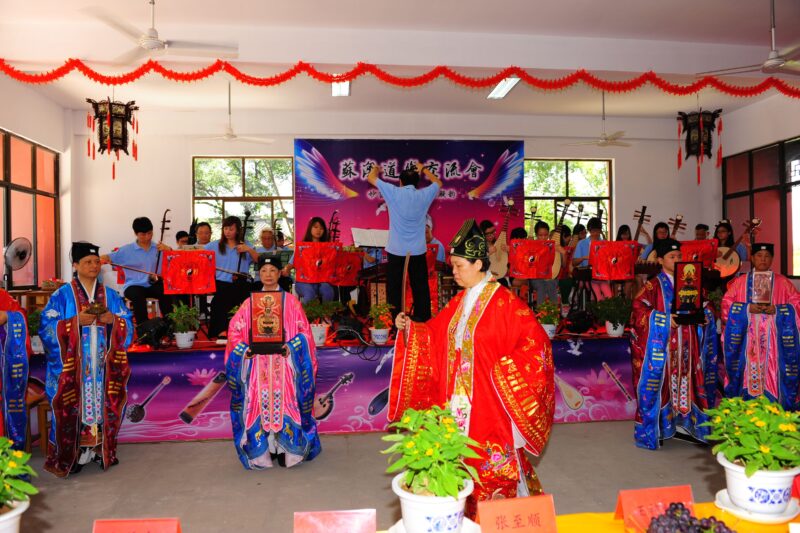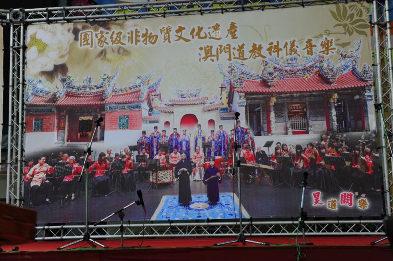 為持續推廣及宣傳國家級及澳門非物質文化遺產–澳門道教科儀音樂,增進台澳兩岸道教文化的交流,澳門道教協會聯同澳門道樂團一行45人,由團長吳炳鋕、葉達及副團長梁文威率團,應台灣道教會之邀,日前赴台進行六天交流及演奏。該團先後到台南下營玄天上帝廟、大觀音亭祀典興濟宮、台東池上玉清宮及台北廬州護天宮地母廟等宮廟進行交流及四場演奏。團長吳炳鋕稱經此次的交流活動,大大地促進了台灣和澳門道教文化的發展,讓台灣東部及南部宮廟認識道教音樂及欣賞到具嶺南特式澳門道教科儀音樂。