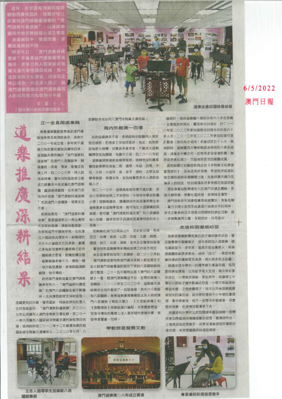 2022/5/8澳門日報 道樂推廣深耕結果