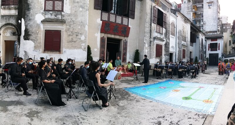 由澳門中樂團、澳門道樂團舉辦的“樂滿世遺——澳門道教科儀音樂會”於2020年10月31日下午4時假澳門鄭家大屋舉行,是次音樂會澳門中樂團、澳門道樂團和澳門道教協會法務團,在袁貝先生指揮下,展演7首具本地特色的澳門道教科儀音樂。,分別是澳門八音鑼鼓之《朝臣大戰》之《大戰》、《迎九皇》、《請將》、《三皈依》吊掛、《三五七星序》組曲、《三寶讚》及《禮斗組曲》。