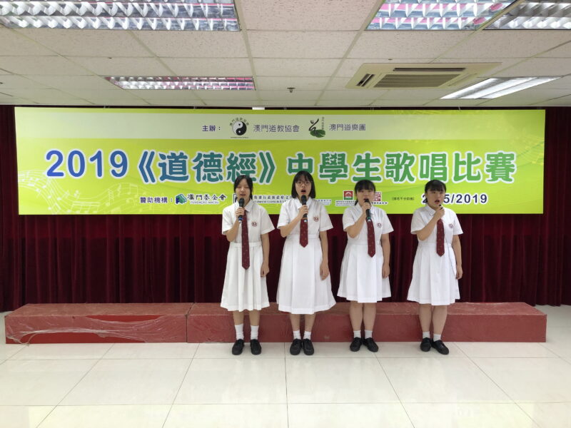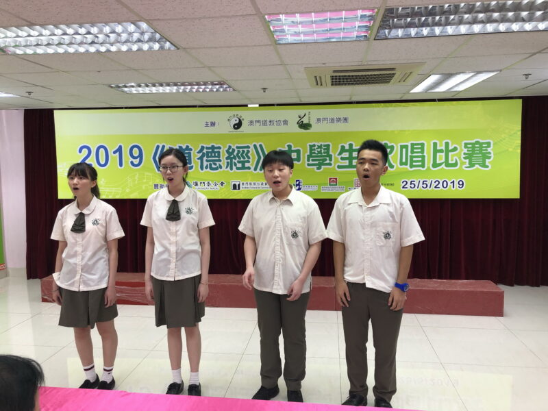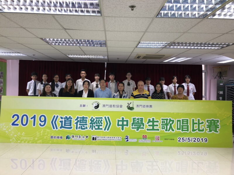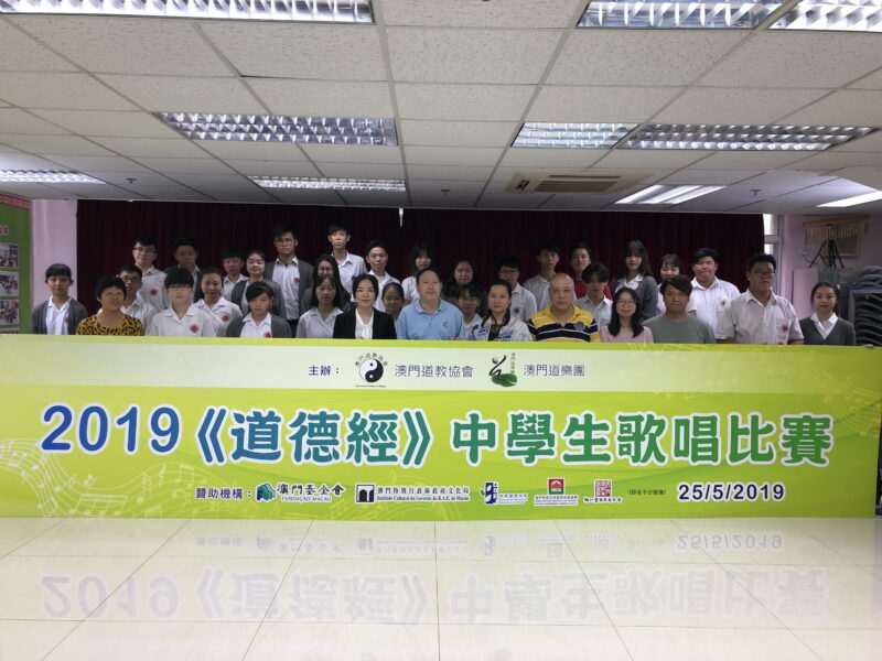 《道德經》是中國哲學巨著,也是一部道教經典,其文化內涵深邃而雋永。為向年青一代宣揚《道德經》,弘揚中國傳統文化,並配合特區政府的德育教育政策,澳門道教協會及澳門道樂團今年繼續舉辦《道德經》中學生歌唱比賽,比賽分校際和組合兩個組別,比賽曲目為《道德經》第三十八章及第三十七章,此兩曲均是澳門道樂團音樂總監王忠人全新創作。比賽於2019年5月25日,下午二時,假澳門道教協會會址舉行,邀請深圳藝涵國際藝術中心王藝涵、陳夢霞和王忠人評判。