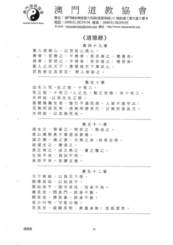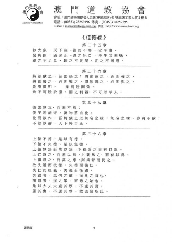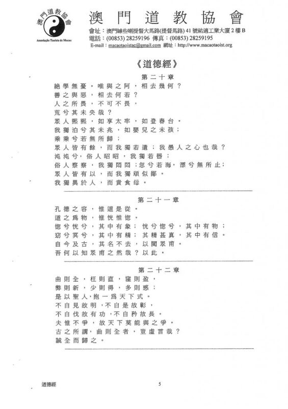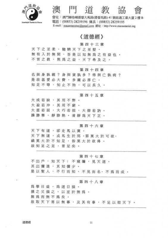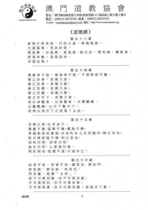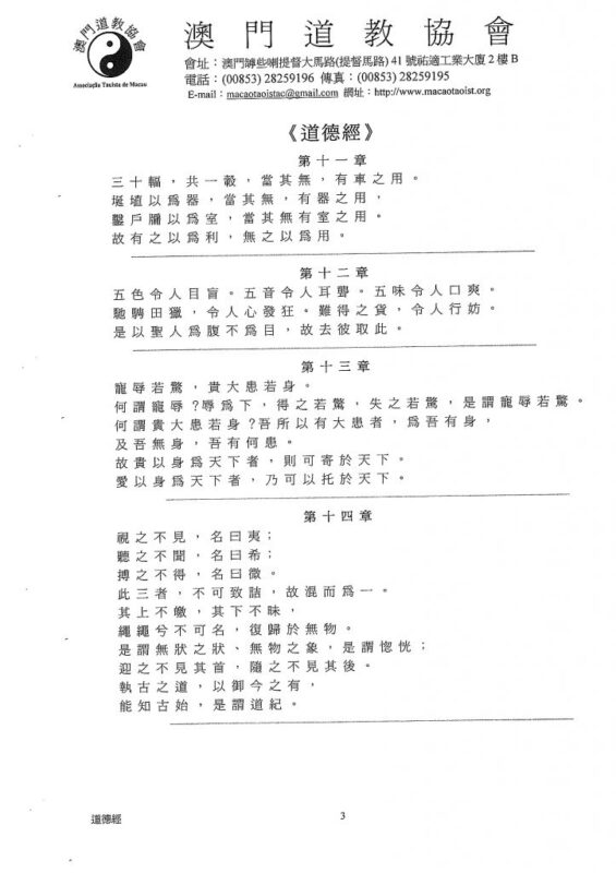 《道德經》是我國一部不朽的經典,是東方智慧的代表之一,也是世界文明的傑出成果。《道德經》的面世,引來全球關注,至今共已有三十多種語文五百多種譯本。根據聯合國教科文統計,除了基督教的《聖經》外,《道德經》是最多譯本的一部著作。