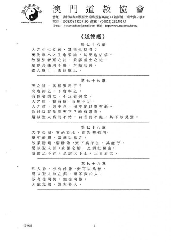 天 之 道 , 利 而 不 害 ﹔聖 人 之 道 , 為 而 不 爭 。