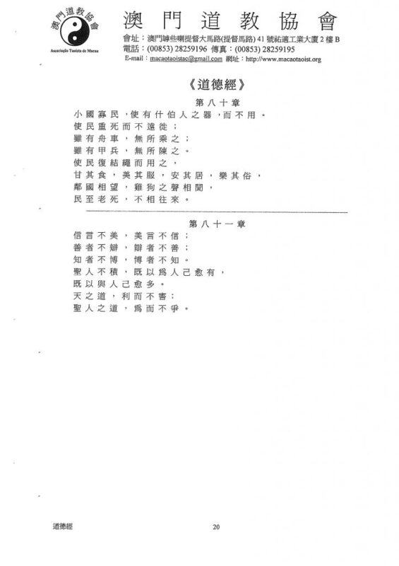 聖 人 不 積 , 既 以 為 人 己 愈 有 ,既 以 與 人 己 愈 多 。